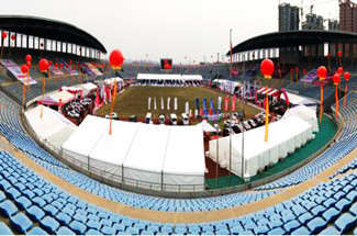 體育賽事篷房的魅力并不全在于外觀,更在于便捷性。對于不同場地的大小,可以自由組合篷房的間數和不同賽事的需求。對于場地的地面無論是沙地,草地,水泥地還是如大理石那樣不可破壞的地面,體育賽事篷房可以用膨脹螺絲、鋼釬以及承重盤,使篷房能夠安全穩(wěn)固的進行搭建和使用,保證體育賽事的順利進行。